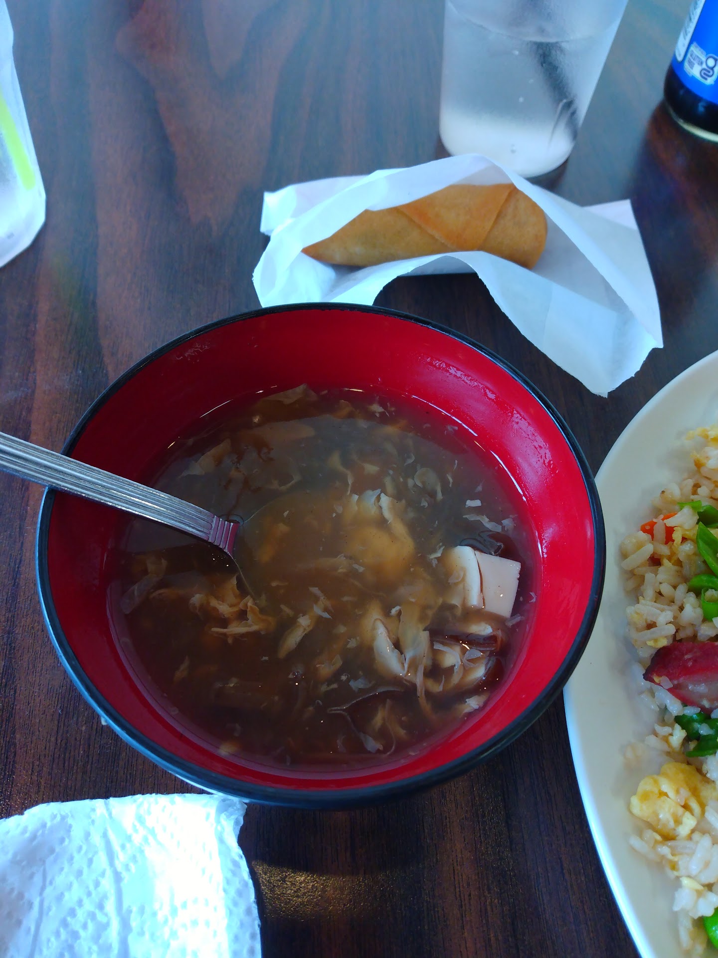 First to arrive was delicious hot and sour soup. Then my lunch special plate. There was so much food on it there was no way I could even eat half of it (and I am a big dude who arrived hungry.)