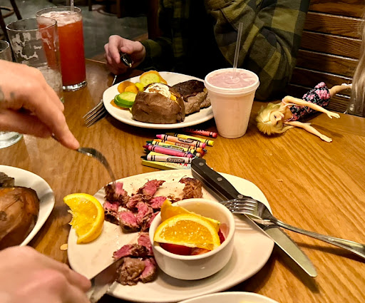 We had ordered blooming onion petals for an appetizer since we had tried a whole Bloomin Onion last time we were there and it was just a little bit too much. The pedals turned out to be better and we're actually cooked more thoroughly than the Bloomin Onion had been.