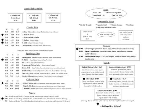 Read moreHas always been my favorite spot to get a hot club sub. I get it exactly the way they serve it & it is packed with flavor. Love the fact you can also get a bowl of homemade soup with a small sub or get a foot long & homemade chips. Wraps are great here as well. If you are bored with Subway and always seem to leave disappointed then come by Friday's. I went here a lot in the 90s before relocating nice to see the same people running now that I am back. Been part of the community since at...