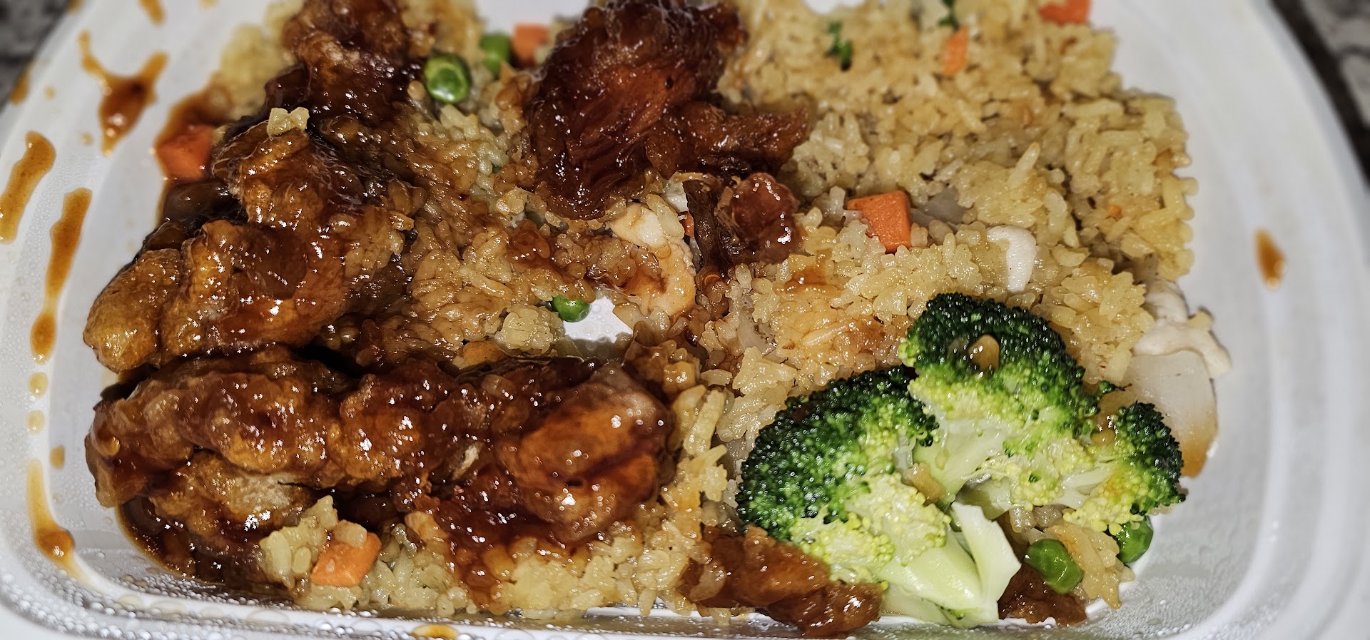 Food is okay. The generals chicken said it's spicy and there's nothing spicy about it. Ordered the dinner around 645 so they were still open until about 9 and the chicken I received was either old or over cooked. Just imagine chewing on leather and that's the texture of the chicken I received. Not a fan of it at all. The chicken fried rice was good but the crab raggoons were definitely overcooked and old. The filling inside was all dry and crusty and the outside chewy and tough. I probably won't be ordering from here again. It was worth a try but it's...