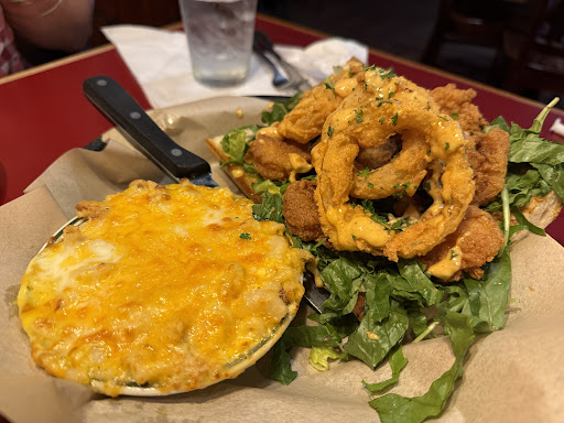 Read moreI was visiting my in-laws with my wife and they wanted to take us here so we gave it a try. The outside looked promising, but as we entered I got the feeling things were going to go down hill. We were seated quickly, partly because it was so empty. The waitress came by to take our drink orders, I wanted a beer and asked what they carried. Besides Bud and Pabst Blue Ribbon the waitress had no clue what they carried. So instead of finding a beer list or going to find out she just told me to go to the bar and look around to see what they had. Seriously, I went to the bar to see what they had. They didn't have much anyway, I ended up ordering a local craft beer and my wife gave up on their beer list and ordered a mixed drink (the beer wasn't very good). So, we ordered an appetizer, crab dip. This was the one good thing about the place, their crab dip was pretty good and the serving size was perfect for four people. The entrée was a different story, I decided to play it safe and ordered a simple chicken sandwich. It was suppose to be cajan spiced, "huge", and come with waffle fries. My wife ordered a roast-beef wrap with chips. Well the food came and it did not live up to the descriptions on the menu. The chicken sandwich was not cajan spiced, in fact, it was quite bland; just a piece of chicken with mayo on a bun, poorly put together. The size was not "huge" and I didn't even eat half of it. The waffle fries were not restaurant worthy, they seemed to be just like the frozen fries you can get at the grocery. My wife did not really like her roast-beef wrap either, she too said it was bland and not very good quality. The only reason I am giving them two stars is the crap dip, it was good. So in all honesty we won't be coming here again, the service isn't very good, the selection isn't very good, and the food isn't very good. If you are in the area and looking for something to eat, just go to the Applebee's down the road, at least they'll have a better selection of food for about...