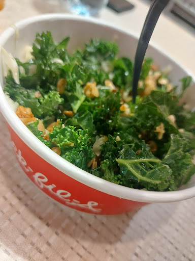 The drive thru- there is one lane for mobile and one for regular BUT then they merge and there’s really no point in doing a mobile order! Today I came inside and waited over 10 minutes to be waited on and 10 mins for my food which is WAY below CFA standards in my opinion. The manager is NOT friendly with a scowl on her face as if I inconvenienced her by walking in here.
