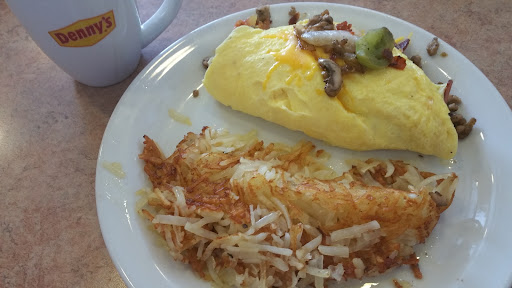 I was reading so I had not noticed it was nearly 15 minutes and my food had yet to arrive. I found the waitress, outside having a smoke. She came in and my food was waiting on kitchen counter. It got to me and was not hot. The pancakes looked like a kid was in back flipping them, they were a giant mess. When the cook put the scrambled eggs on my plate they were piled on top of the hash browns. I'm not picky but the food was not warm and was basically a mess on the plate. When I said something to the waitress she replied if I wanted a new plate. Yes. The do over took nearly 10 minutes, again, only customer. It came out hot and the plate did not look like my blind brother had thrown everything together. Granted it was Denny's, but their presentation is usually pretty decent.