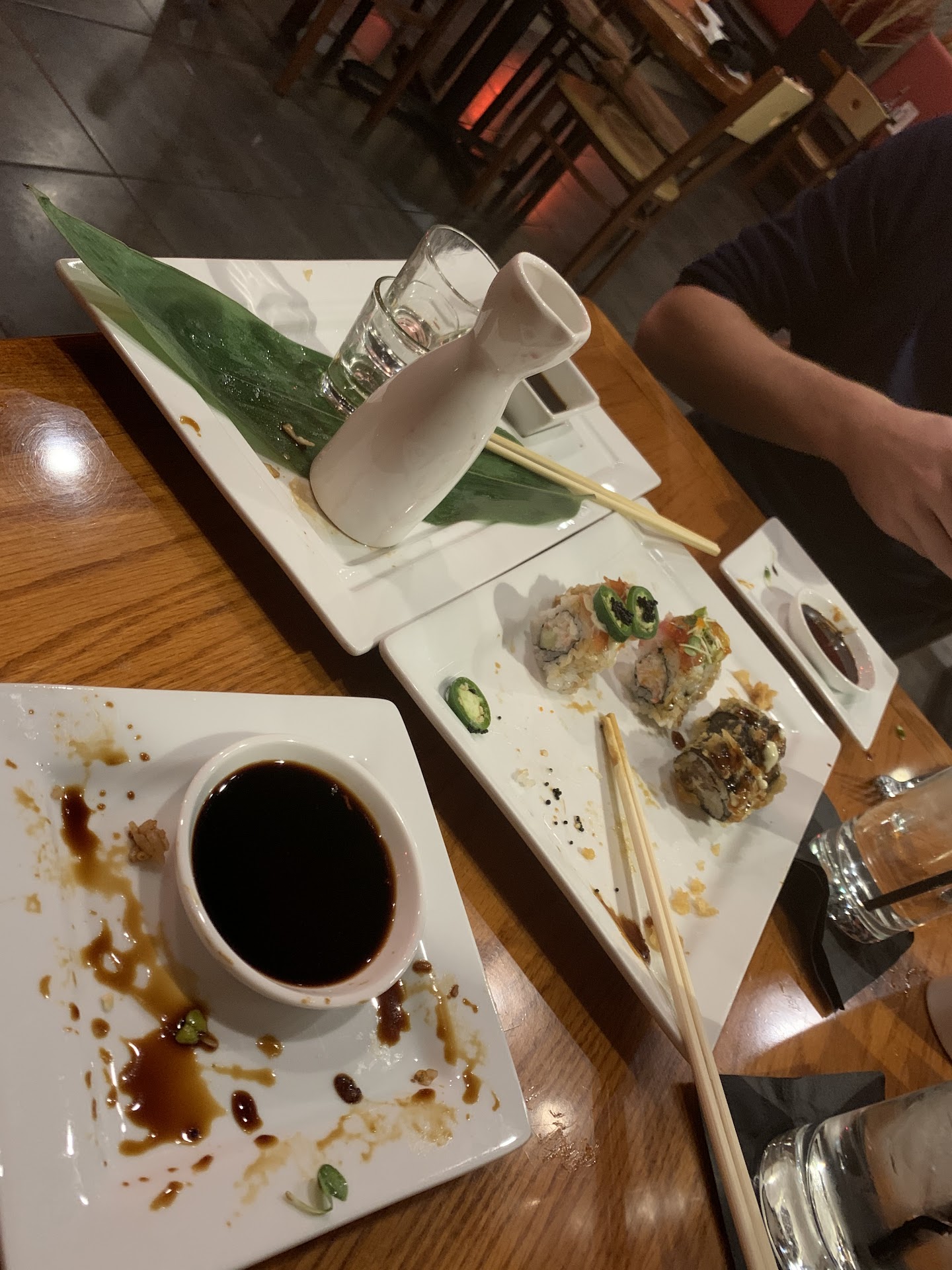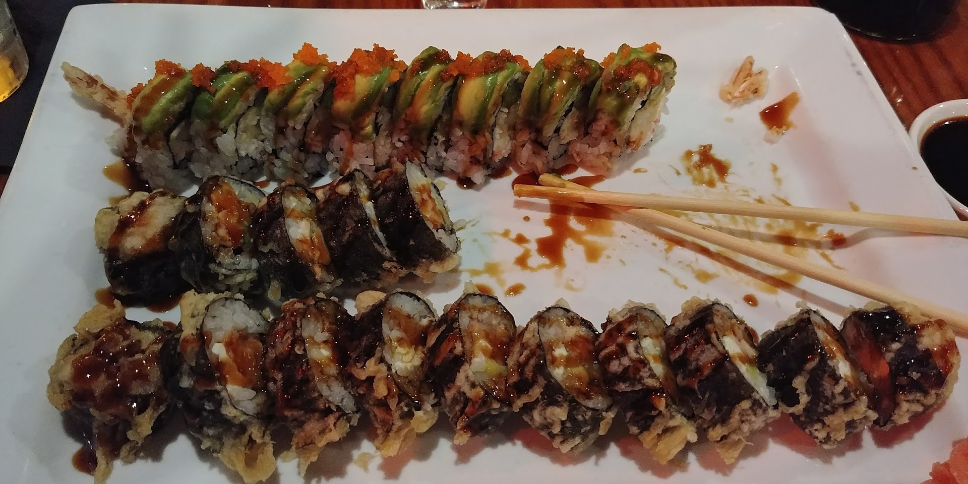 Ā Ā Ā Read moreSo I walked in like the sign says a guy says hi. And that was it. Taken back I said hi, umm who do I see for a seat? He say say oh that's me. Then says just sit there and someone will be with you. Gesturing to a small table. Now this was over 10ft away and I had no menu. Well after I waited 5 mins at the table NOBODY greeted me. This is my biggest pet peeve! Not a good start. I had to resort to Google for a menu. Well I got fed up and was hungry. So I got up and went to the bar. Well she was cashing out a guy and I sat to his left since the only spot available. Well the bartender walked away when she was done and completely ignored me. Then after 3-4 mins of sitting there she said ill be with you while she was making a drink. Took care of another customer then came over. I put in my order and asked for a water. I got a water with a dead fruit fly in it. Then i got a second water with a crack it it at the top of the glass. Lovely. I got one of my roll 15-20 mins later. It was shrimp tempura. It was barely warm. For a fried roll I have never had one at a restaurant then didn't come out too hot to eat right away. I got half way and the rest was cool. We shall see my next one comes out because it's fried...