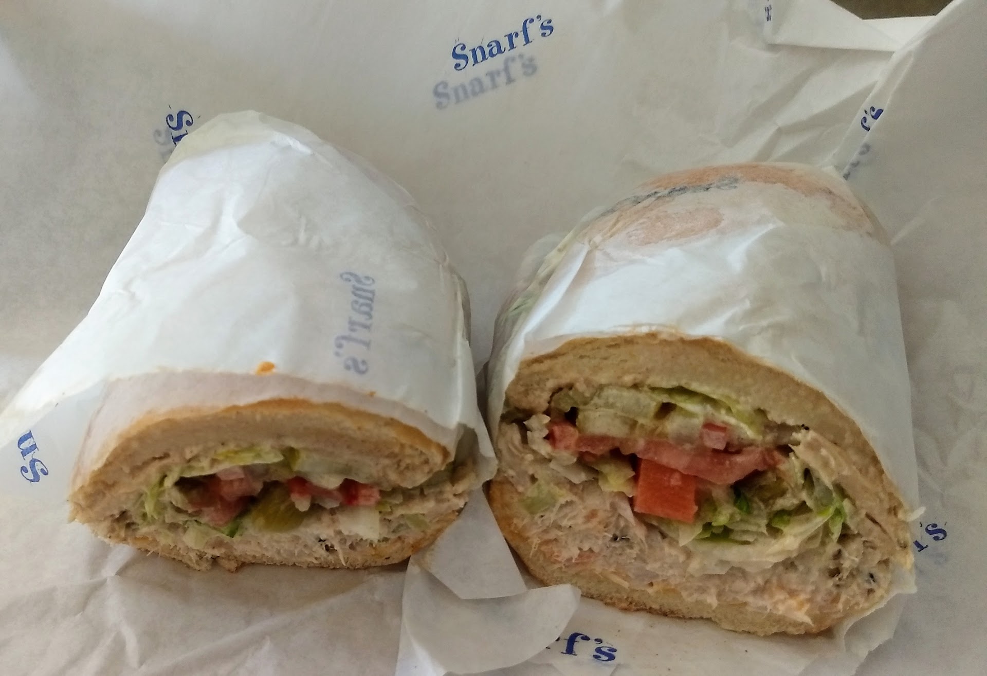 Read moreI used to eat at the original Snarf's in Boulder, Colorado and other Colorado locations. I have been ordering the same sandwich for over 20 years. I ALWAYS get the tuna salad with American cheese with everything on it. The location at the Loop always made it like the original but they are closed now. I saw they opened this location close by so I decided to try it. After about 6 different occasions, they still aren't getting my sandwich right and I've been disappointed every single time. They always do something wrong. Today my sandwich wasn't that bad but they just need to toast it a bit more. I will make sure I ask them to toast it more next time when they aren't so busy. You know it's properly toasted when the roof of your mouth hurts after eating it. Also, they need to actually put less tuna salad on it. I think those things will make it less soggy too. Anyway, I ate my sandwich but I guess I can't get original tasting Snarf's tuna unless I go to Colorado. It's a real shame the Loop location closed. I generously gave them 4 stars today however, I hope they can earn 5 stars...