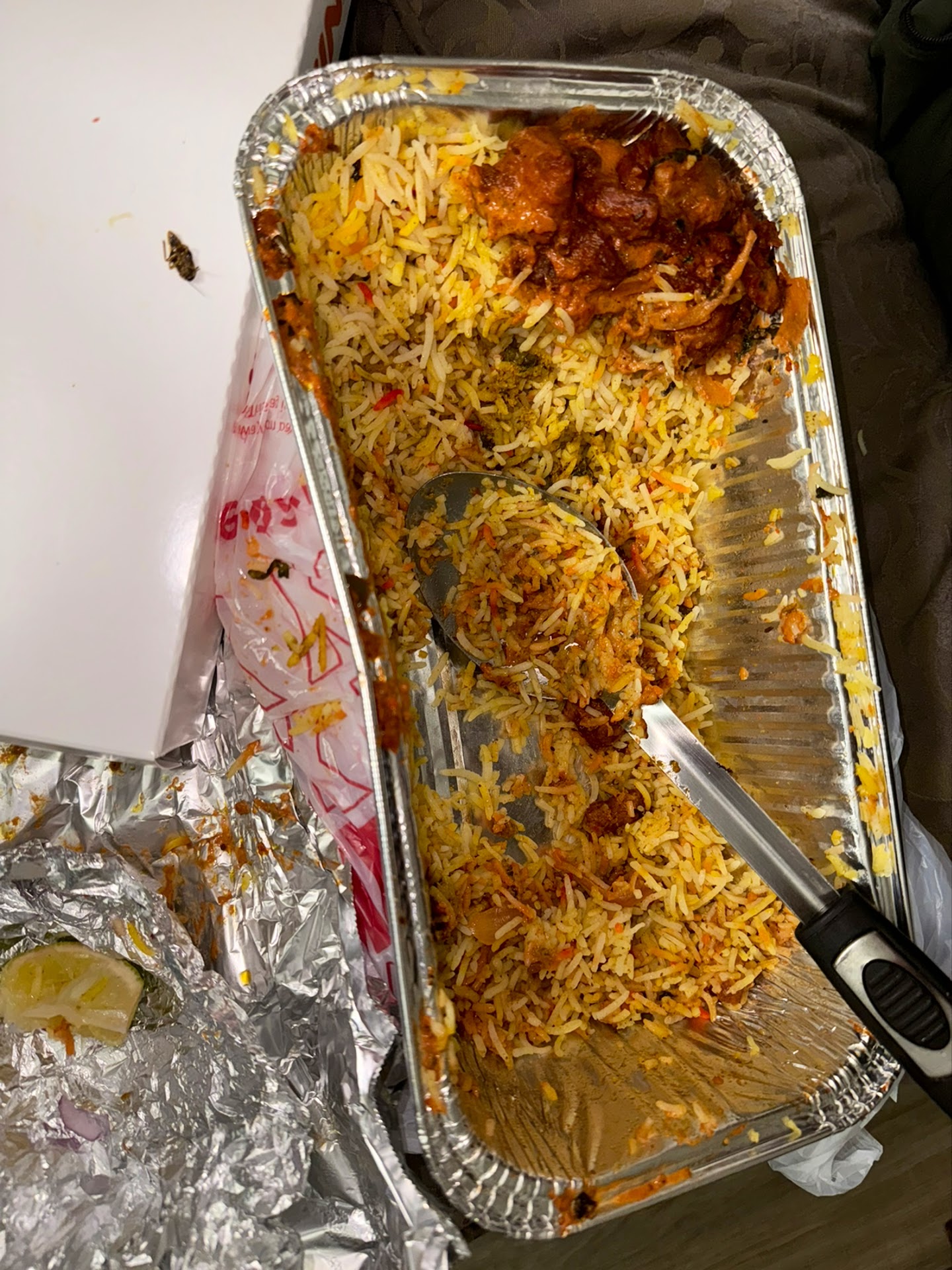 Tried to talk to them, first the waiter picked the phone, he recognizes me by name,since I go there always. He said manager comes at 3 0 clock. Tried to tell him about this. He wanted me to bring it back. I live in chesterfield just for this I cant go back. He gave the phone to chef, he was so arrogant and said that is how Dum chicken dum briyani is made in his store.