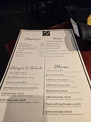 Read moreHands down the best spot in Crofton for good food. I'm irregular and I'm a bit addicted to the chicken limone but every time I try something new I'm impressed as well for example the fried green tomatoes tonight, finally a proper order of fried green tomatoes presented beautifully and tasted absolutely delicious. I'm left wondering what all these other fancy restaurants are doing with their chefs. For example I went to the Severn Inn the other day with my niece and had quite possibly the worst Fried Green Tomatoes I've ever had poorly prepared poorly presented a god-awful sauce in a really tacky plastic clear to go ramekin, but let's stick to Allison's I absolutely recommend the chicken limone but also the mushroom ravioli and the pork loin chops if you can get them. The owner is the Chef and he sources locally...