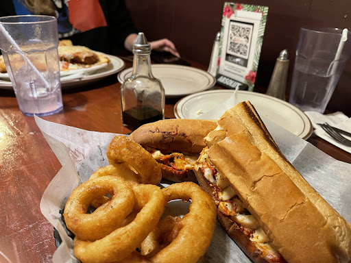 I had the Chicken Parm Sub with Onion Rings (best onion rings I have ever had). Girlfriend got tortellini with meat sauce (which wasn't on the menu but the restaurant was easily able to compensate her request). And our other party member had the Chicken Parmesan (also the best I have ever had.) And for the table we split a large Margherita Pizza for $21 which was 16 inches but felt even bigger. The toppings were fresh AF, whatever cheeses they are blending to top their pizza - DELICIOUS...and their sauce...don't even get me started on that sauce...SWIMMING IN DELICIOUS GARLIC. Exactly how it should be done.