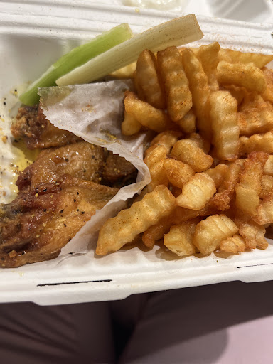 First time. Ordered online, ready before I got a text. For $18 after tax I got a 10pc boneless wing and fries, and received a very full take out container and a drink. The half/half tea lemonade was quite tasty. However, these were probably the driest boneless wings and most tasteless fries I've ever had. The flavor and dry rub and meat quality of the boneless wings was ok, but they were not crispy and there was almost no sauce. Maybe a given for the garlic parmesan but jerk was like eating sand. Dipping ranch tasted store bought. Fries - I usually love crinkle fries but these had 0 seasoning, 0 sauce, and for some reason 0 flavor, like not even fried potato. I feel fine but if it turns out I had COVID and it took my taste away, I will come back and amend this review. 2 stars because nothing else to eat, at least all was edible and it...