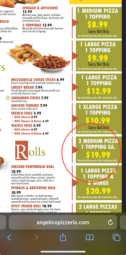 We were charged $28.60 and the explanation was “the cost for cheese pizza went up so the price went up” we then asked “is your menu outdated” the gentleman proceeds and says “no it’s not”. So if the menu on the website is not outdated then why charge more than what is being advertised? Yes this is only a $3 difference it’s not going to break the bank, it’s the principal.