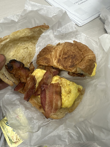 Read moreThis was my very first time ordering from this location. My co worker and I ordered breakfast. I ordered online and got a croissant , bacon , egg and cheese, also asked for ham to be added. Total came to a little over 7$ from 4.99 posted