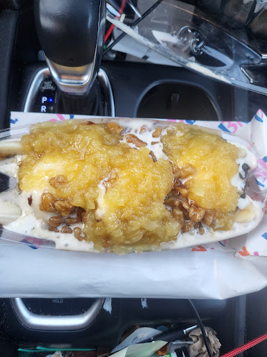 Today was my first time going to this location. I walked in and no one greeted me. There were three employees there and they didn't acknowledge I was there for about 5 minutes. Normally I wouldn't object to generous servings but they heaped so many toppings on my banana split that I had to scrape some off. The container was sticky and so was the bag. I used hand sanitizer to get rid of the stickiness. But I admit after removing the extra toppings, the banana split tasted delicious.