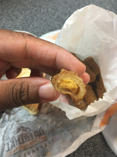 I went inside and looked at the menu and decided to order the buy 1 get 1 for a $1 promo. The guy at the register said âwe are no longer doing that. It changed to The new deal : 2 for $6 and these are the sandwiches available.â I said well you need to honor the order and change the advertisement. He told me he couldnât. I was with someone so instead of pushing the matter I proceeded my order and got the 2 for $6 and some additional items (2 for $10, another 2 for $6 and a 2 for $10,8 piece mozzarella sticks, nuggets and a icee) I waited a long while before finally receiving my food. Once home, I sat down to eat. The food was unsatisfactory. The mozzarella sticks looked to be about 5 days old. The cheese was COMPLETELY dried on the inside and was BROWN in the middle. The original chicken sandwich was DRY. The âchickenâ was flatten and dry. And after a bite i realize that the flavor was weird too. So I immediately took the items back (2 towns over) When I got there, the lobby was closed (9:13) they were closed and cleaning. I knocked on the door and pointed at the bag they let me in. Other than the guy mopping, No one was wearing a mask. I told Manager the food situation and showed him the food. he apologized and offered to fix my order. I told him I didnât want to eat at that location ever again. I went online and did the survey on the receipt. Waiting for Corporate...