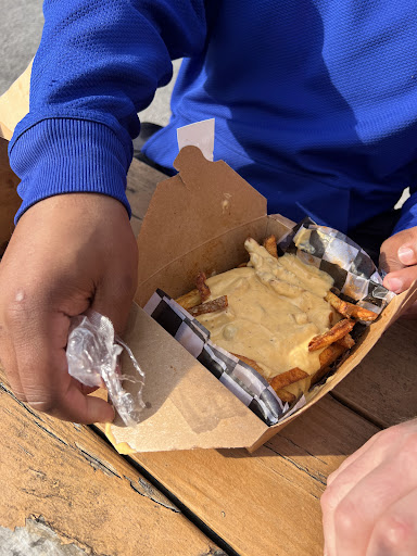 We had the cheesesteak eggrolls, mac and cheese, veggie burger, French fries and two bottled drinks for $40. It may seem pricey for a roadside grill however the food was absolutely incredible. The veggie burger blew me away, making up for a terrible one I had the night before at Ace's Run. It was crispy, seasoned well and had different vegetables inside without anything overwhelming the flavor. And the French fries... holy smokes! They were so good. Nice and brown, perfect amount of salt and a huge portion for only $5. The cheesesteak eggrolls were unique and definitely something we will try to recreate at home.
