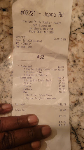 Read moreThis was the double meat “old school cheesesteak” picture below, WOW how disappointed I am. The bones less wings I asked for sauce on side NOPE! Then asked for bleu cheese & celery, NOPE! I felt bad even asking as it seemed, was a huge deal, because must have been the 2 employees were not quite, hearing “Yo this guy wants everything” Tough when I only want the two condiments which was the only thing besides placing order. Customer service I have realized not to expect much with what we have as employees to pick from, shame the work ethic doesn’t exist any longer (general statement for the majority). Things are tight and prices are high, $10.29 for a “where’s the beef”” cheesesteak . I always try to give places a second try, everyone has a bad day, this time I will not. Moving forward maybe take down the pictures also, as HOLY MOLEY not even close, I don’t expect pictures, knowing they never do, but yours not even close. Hopefully the store off Joppa rd, will get a little more training (service)and put meat on subs and work...