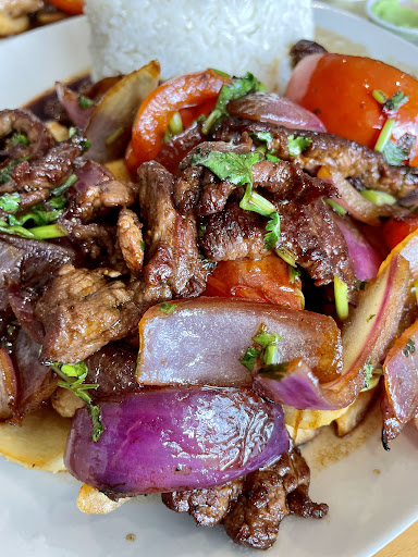 Their Lomo Saltado (with strips of Steak or Chicken sauteed with Onions, Tomatoes, & cilantro served over French fries and rice $16.99 ea.). STAMP!! Tender steak, well seasoned chicken, with Asian/Peruvian spices…STAMP!! No sauce needed!!