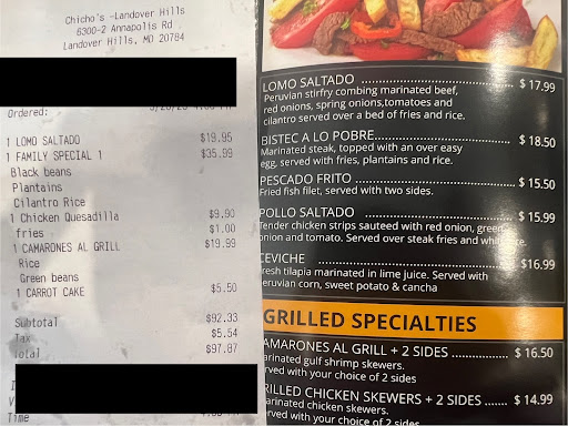 Read moreMy name is Meredith I ordered dinner at Chicho's Peruvian Charcoal Chicken, one of my favorite restaurants to eat at regularly. This has been one of the best restaurant experiences we've ever experienced. Judith, Maria and Jose, greeted me with a friendly smile, professionalism and extremely prompt amazing service! The carne asada meal I ordered was outstanding, super fresh and mouthwatering as usual. Their dedication to excellent customer service and professionalism is second to none and reflects great credit upon themselves and the Chicho's Peruvian Charcoal Chicken brand. We will continue to come here to add to this amazing culinary experience we received. My overall rating undoubtedly is 5 out of 5 stars without hesitating. Judith, Maria and Jose, all deserve a big raise and the biggest recognition/honorable mention for her amazing friendly service, attentiveness and professionalism. Thanks Chicho's Peruvian Charcoal Chicken brand for hiring these jewels of employees to represent your magnificent restaurant...