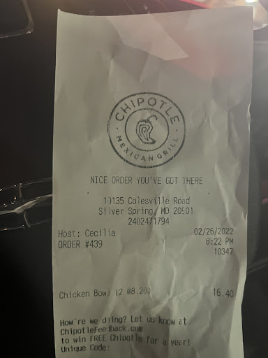 Read moreFrom the moment my husband and I walked in to when we left; We walked in no one greeted us. We both got burrito bowls; Chicken/carnitas and Carna Asada the portion for the rice was way too much and only a half scoop of the protein. The sour cream was nasty almost tasted like it was expired. We paid and went back to ask for hot sauce the worker looked at me as if I was bothering her and asked which one I wanted. I asked for the verde and she gave me one, I asked for another for my husband and she rolled her eyes. It was in small containers with a small amount in it. Every SINGLE table or counter was dirty with food from the previous customer. I wiped the spot my husband and I sat at. We had to use the bathroom and the bottom of the receipt had a code for the bathroom that did not work so I went back and asked for the code and a different employee gave me the code with an attitude. The bathroom toilet was dirty, floor was full of toilet tissue and paper towel, the paper towels were coming out the trash it was so full, the mirror was dirty and it had a horrible smell in the hall by the bathroom. We...