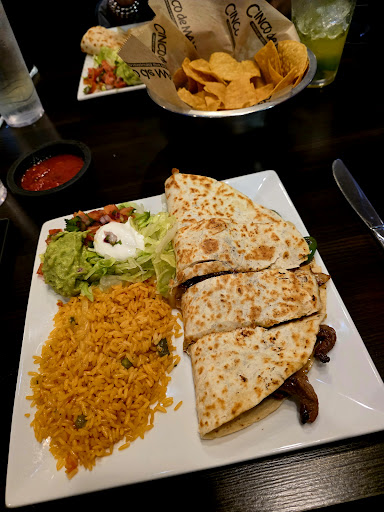 My wife and I have gotten take out from here many times but this time we decided to stop in for a quick bite and drinks. Truly one of the best Quesadillas I ever had. The steak was perfectly season and cooked and the white cheese melted wonderfully. I paired it with a Pomegranate Margarita, which was fabulous. My wife had the Chicken Quesadilla and a Mango Mojito. Then we came back another time and had the same drinks but tried Fajita Quesadillas, hers with chicken, mine with steak. The added onions and peppers and Mexican rice made a great combination. Service was great, as the server quickly brought out out orders and occasionally checked to make sure...