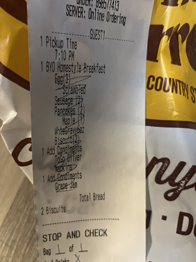Read moreI never write reviews just to talk a business down, but I have to share this experience out of concern for future patrons. We went here at around 8pm on Thursday night. Wasn't busy so was seated once they cleaned a table for us (quite a few tables were people had eaten but the bus service hadn't cleaned yet). I went here with my guy, our kids and my Dad. I ordered fried chicken tenders, mac and cheese, loaded baked potatoe and carrots. When I started eating the baked potato I didn't notice anything at first because it is literally loaded with toppings, but once I got to one side of the potatoe the color looked a little weird. So I scrapped off the sour cream and butter and the potato was literally rotten in the middle to the point it was black on the inside, and looking further it had spread to the outside of the peel and broken through. There is no possible way the kitchen missed that, it would be IMPOSSIBLE. And to still fix it up and try to hide that from the consumer is not only negligent is straight up dangerous!!!! When I told the waiter he looked at it with a grossed out face and asked if I wanted another one. I told him no I'm good!!!!! And he was relieved because he told me they get their potatoes frozen and it would take forever to remake. Fast forward to getting home and being there for an hour and my Dad called me asking if we were all okay. I said yeah why? And evidently about 30 minutes after he got home he started throwing up and it wouldn't stop... he had the country fried steak and he got food poisoning. Thank God the kid's food was okay, but we will NEVER go there again. And it's a shame because Cracker Barrel use to be an AWESOME family restaurant...