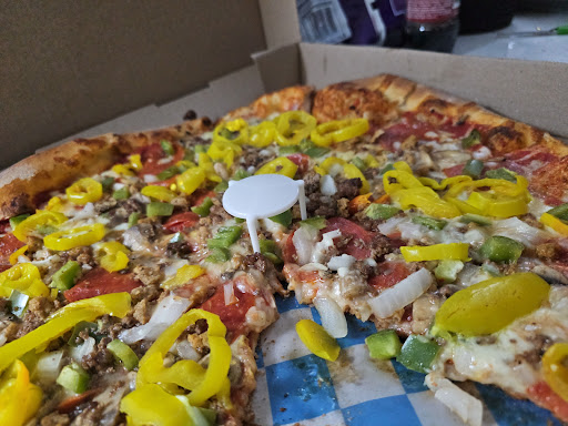 Read moreGot the order to do so I can't honestly comment on the atmosphere or service of this pizzeria. The pizza is quite honestly piss poor. It lacks in quality and taste. It has so much flop that you end up having to use two hands to mess with the pizza to either fold it or flip it up to grab a first bite. It definitely isn't my first choice in pizza locations. It's sad to say that Little Ceasers has a better pizza product, and we all know that's a bargain basement as one can get pizza wise. I didn't pay for this pizza order as it was supplied for a birthday...