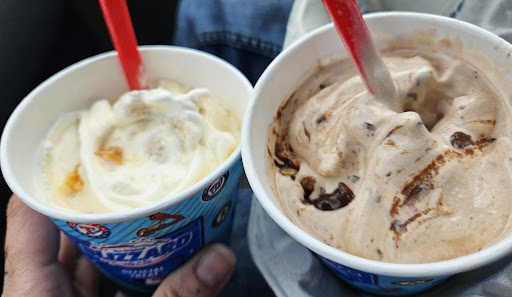 Read moreCame through the drive through and did the app ordering and it stated it would make it fresh, then get to the window to find we have 4 blizzards that are melted with lids on them. The lady at the window was rude and argued about flipping them over, what a shame since we go there often. Looks like we will have to go to another ice cream shop.