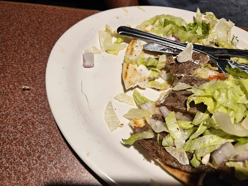Read moreFood was a serious issue today. Who makes cream of crab with a red tinge? Half and half maybe but no. Asked them to replace with MD crab, and found evidence of chicken in the soup (shredded chicken is a common replacement for crab for people with shell fish allergy). So no crab meet in the soup but did find chicken fat and bone. Could not find any crab in the cream of crab. Anyway enough about soup. My main was a gyro platter. After taking a few bites, not very outstanding at all where gyro are concerned. Pre packaged and pre cooked meat. Not off a rotisserie. But the straw that broke the camel's back was a couple hairs that I found in between the meat and the pita. See the attached pic. There was a third I found after the pic. Waiter tried to say the hair was a brush bristle. Well you have to come up with a better system if you cooking methods make hair like substance appear on the plate. Wife had Chicken tenders. Menu said 4, she got 8 half sized ones and they were cooked very dark like the grease needs changed or at least filtered. If that was the only issue we would have given a much better review. Alcohol served from a drink making "Bar" at the door that looked like a bomb hit it. By far the most unappealing area of the store. Looks like a teenager's bedroom. If you are going to have a bar that you want to be presentable to the customers, well make it presentable. There is a very nice looking dessert case with a lot of large treats. We did not partake at that point because we wanted to get out of there as fast...