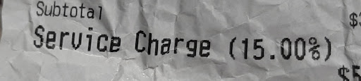 We get ready to leave and receive our bill, which had the sandwich removed and only had an order for one person now with two drinks: $45. Sorry, what? $45?? How does that make sense? Turns out- this location puts a MANDATORY SERVICE CHARGE 15% on your bill. No matter what. You feed us an order full of presumably old food and one that even has ALUMINUM FOIL INSIDE IT which someone could had eaten and been harmed, and this place has the nerve to put a service charge on my bill?? I didn't pay you to feed us inedible food.