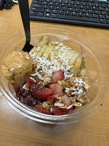 The worker in this picture, completely unprovoked, from across the restaurant, began verbally attacking me for holding a coffee in my hand (from another establishment) which i had been drinking while driving to Doughrun to purchase items from Doughrun. The entire restaurant was stunned at this worker's emotional instability and personal agenda to apparently attack customers at random.