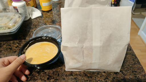 We ordered queso and chips, a Carnitas taco, and a chicken burrito. Everything tasted good, but not very amazing. The queso was particularly disappointing. It was very yellow (it's supposed to be white) and it mainly tasted like cheddar with a little queso. Not worth it. They also didn't give us a lot of chips. I could have gotten twice as much at Giant for the same price.