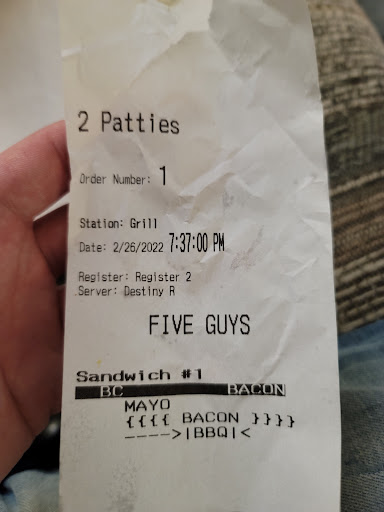 Read moreOrdered online arrived 15 minutes later and stood and waited another 20 more minutes. Total chaos, no organization. Would give negative stars if it was an option. It's 8 pm on a Sunday. This isn't a dinner rush. With 8 employees you would think something could get done. You may need someone new on fries, they clearly suck. Fist time visiting this location and will be the last. I could have drove to the glen burnie location and back faster than I waited for...