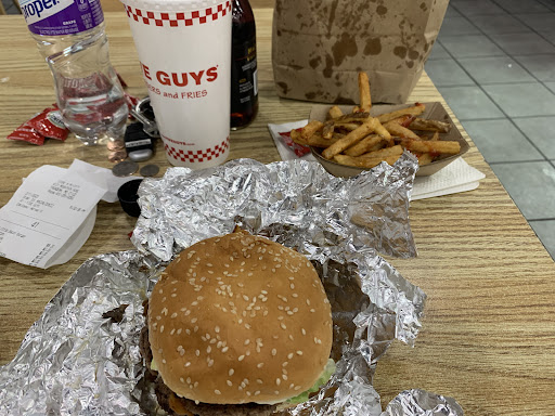Read moreWe stopped by here after visiting a park. We love Five Guys but were left dissatisfied with this particular location. We are a family of 6 and ordered food for everyone (so you can probably imagine the total). We didn't receive all of our food and the fries weren't heaping like every other Five Guys resturant we have ever been to nationwide. One burger had aluminum foil in it as well. The quality, and the quantity did not match the price or the experiences we are used to. On the plus side as soon as we notified the staff that our order wasn't correct they did work quickly to make the missing food. And one of the employees was very engaging and had great...