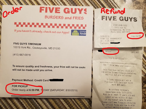 This review is for the 5 guys at 10015 York Rd in Cockeysville, MD.