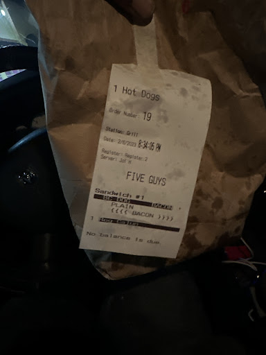 Read moreThe food is....Five Guys. The burgers are delicious, the fries are wonderful. It's unhealthy, greasy, pure deliciousness. So why the 2 star rating? I've ordered from this location twice using their online ordering system for in-store pickup. The first time, I showed up and they informed me that they had just accidentally given my order to the wrong customer, and as a result, had to remake it. Ok, errors happen....but by the time my replacement order made it into my hands, it was 40 full minutes after my pickup time. I wouldn't wait 40 minutes in a fine dining restaurant, let alone a fast food joint.