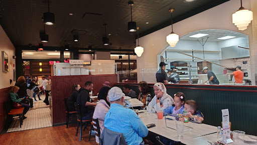 So I just ate lunch there on May 21. I was able to get seated right away. I ordered my favorite: “mootz”, onion and sausage. At least at this location in Bethesda, unlike the original in New Haven, mozzarella is automatically included on your abizz pie. I ordered extra sausage because I remembered that they were skimpy on the toppings at the satellite location in Manchester, CT. However, that proved to be unnecessary in Bethesda. They are generous with the toppings. I ordered a medium pie with the aim of taking some home. It was enormous. I could barely fit the leftovers in a box. Overall, however, I found the quality of the pizza to be a bit inferior to the product at the original restaurant in New Haven. I can’t quite explain why, but one thing that I and my friend agreed on was that the crust was thinner near the center of the pie, which made it difficult to handle. I forgot to ask if the sausage was the same as they use in New Haven. It looked the same and tasted okay, but possibly less spicy than the Lintini’s or Lamborghini’s sausage that they use in New Haven. So I was a little disappointed with the pizza, but it still beats any other pizza I can get in Frederick , Maryland by far. They have only been open for about a month, so I hope they will soon be able to make a more accurate version of Frank Pepe’s...