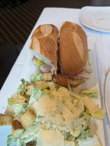 The tables were full, my wife and I decided to eat at the bar, no problem full menu at the bar, sure! We were approached by Jamie 35 yr veteran in the business the bartender, It all went down hill from here… the bartender Jamie decided he was going to give my wife the red carpet treatment and exclude me. He took her drink order but then insisted on a specialty drink for her instead, he made her drink and literally ignored me all together. Finally got to mine, no big deal. He took our food order, while waiting for our food somehow or another the bartender had to show us this copy of a receipt of a 22k bar tab on his phone at a previous job (you could tell he brags about this all the time he found picture in literally a second) whatever not impressed! Our main entree comes 45 mins later and the bartender comes around the bar to where my wife are I are sitting to replace only my wife’s silverware. Reaching between us to put the knife on table “madam your knife he says” and does the other side with fork “ madam your fork” but has no silverware for me ? He hands mine to me across the bar. The bartender ask if she wants Parmesan cheese and she does as I do as well, he comes back around and puts a nice even coating over her dish then he sloops some on the corner of my oblong dinner plate. My wife and look at each other like what’s this guy’s deal ?