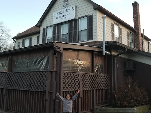 Read moreI had an appointment to install my car alarm, and had to wait a couple of hours until the installation was done, so I went on a, search for a place to have lunch, and, serendipitiously, stumbled upon Hershey's. I got there a couple of minutes before they opened, but I was invited to wait in one of their outside tables. It gave me some time to look around the place. Hershey's is tucked away in a semi-industrial area of Gaithersburg, right across the railroad tracks. It has a lovely patio outside, which I am sure would be great in the summer months. The establishment is primarily a local watering hole with a well-stocked bar that also serves a limited but substantial menu. The dishes seem to be influenced by Southern cooking. There are multiple tables, which by the time I left were busy with local patrons. Following what is usually my preference, I sat at the bar. I ordered one of their beers on tap, Kona, which was refreshing. I ordered one of their fried chicken platters, the two-piece white, which came with two sides, and mine were fried okra and coleslaw. There is a 25 minute wait whenever you order fried chicken, because it is fried "a la minute" (to order), and that meant receiving a wonderful plate of freshly fried chicken that was shateringly crispy outside and juicy and moist on the inside. The chicken was well seasoned, and so where the crispy fried okra. The servings were generous! I want also mention the wonderful service I got at the bar, where I appreciated the conversation with the bartender. Hershey's was a little gem that deserves to be visited more than once! I did not want to leave out that they also have live music and dancing on...