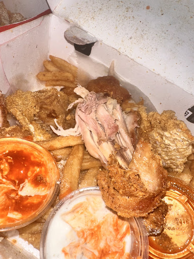 Read moreFirst let me start by saying, eating here got me extremely sick. Even as I was looking around paying for my food maybe 2 hours after they opened the entire kitchen was just dirty. Food, breading, flour everywhere. Baskets of cooked fries and fish just sitting over the oil waiting to be refried. And the two gentlemen who helped me were rude and seemed very nonchalant to be working there. I’ve worked in fast food for a few years and I know there’s usually a bit of cleaning that needs to be done overnight and in between rushes. Especially for an open eye view kitchen like this location. But the way it looked I wouldn’t be surprised if the dishes were dirty from the night before. I ordered chicken, fish & gizzards. The fries in each box was hard and dried out. The fish was extremely soggy (usually they’re crispy which I love) and the chicken I bit into was raw.. you can’t serve pink chicken. The picture does no justice but I’ve been vomiting from food poisoning for 2 days from eating at this location. And it’s on me I should’ve ran when I saw how dirty the kitchen was. Hope they can reach out to me and refund the $30+ I...
