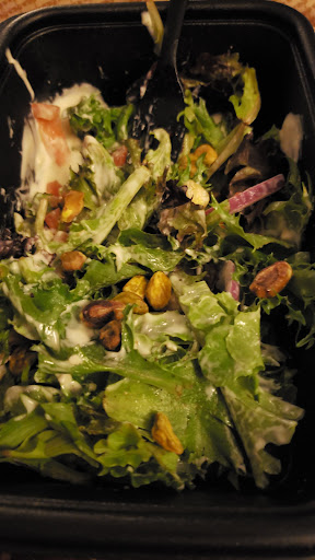 I ordered a senior breakfast packaged up half to go. Then ordered another dinner to go. I steer clear of any types of fried chicken but decided to order the 2 piece fried chicken dinner with spinach and mashed potatoes. Took a taste test of a piece and it was fabulous absolutely fabulous! Juicy crunchy moist completely surprised at the magnificent flavor. I got their house salad I love they use red onions and fresh tomatoes, I also had my favorite blue cheese dressing I added a couple of pistachios and made it my own.