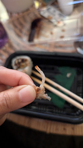 There was a massive bone in my eel roll and there were portions of the eel that were really hard and barely edible. I ended up spitting out the last two pieces of my roll.