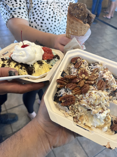 Read moreWe were in town for my sons baseball tournament. We had just finished fishing and were heading back to the hotel as it was getting late and I saw this place and was thinking how good ice cream sounded. It did not disappoint. Their homemade waffle cones are amazing. My son has a tree nut and peanut allergy and they made sure to take extra precaution (though they dont have separate "allergy safe" blenders and they have signs notifying customers of this) but just ice cream scoops/sundaes they take extra precaution and grabbed my sons from the back. I got coconut ice cream in a waffle cone, my son got mud marsh? (Something like that) in a waffle cone, and my boyfriend got some peanut butter sundae. They were all amazing and if we're ever in town again, I would...