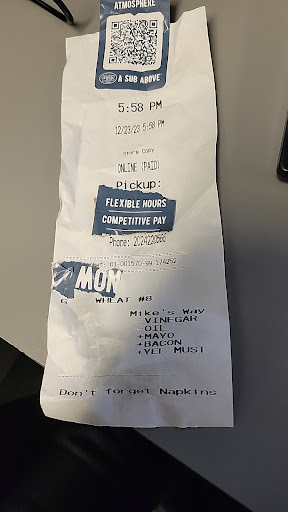 Read moreWe were there this morning. Arrived @10 but they were not opened yet. Manager saw us standing in the rain/ snow waiting for them to open. The sign says they open at 10 am. Finally at 10:09 the manager walks as slow as she can to the door.switches the sign to open, turns and adjusts a few tables, finally turns to the door and opens it at 10:17. Once she opens the door she doest acknowledge us, just turns around and walks back behind the counter. While we are waiting to give her our order.. finally about 5 min later she asks is we are ready to order.. I tell her I've been ready since we walked in. So she takes our order of the steak and cheese. Again she turns around and walks away but left our receipt on the top counter. I took it and walked down and paid. My husband and I sit and wait for another 10 min and I said to my husband that they have not even started our order yet. Finally almost 15 min later..the manager starts our order... 25 min after we ordered our order is ready. The sub was good as always but I will go across the street to subway before I go back to this...