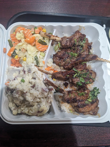 I fell in love with their lamb chops which are a 15 minute wait. Four lamb chops on a bed of rice with your choice of two sides. I have tried their redskin potatoes, mixed vegetables, cabbage, and also their red skinned mashed potatoes. All are very good and mildly seasoned.