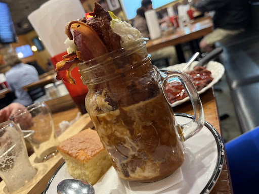 By that I mean, the quality dropped, hard and fast. I'm not sure why, I don't think it changed ownership, but all of the sudden the pulled pork was dry, the brisket was tough, the fries were soggy, and it seemed as if all hope was lost. One possible explanation was a newfound obsession with bacon and a focus on craft beer/bourbon. Everything on the menu had a bacon option which was, for a month, exciting, but it seemed to be at the expense of the rest of the menu. I had all but stopped going there entirely until a friend specifically asked to go a few months ago.