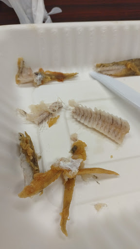I ordered the lake trout lunch combo. Price was ok, the fish tasted wonderful, it was seasoned well, good battering, but, I have never had so many fish bones on my life, my goodness. The fry the fish with the fins still on and the bones still in. So if you like picking your fried fish apart to pull out the bones and still getting 4-6 bones per bite go here. Honestly I don't know why you would go to all the effort of frying fish (which was done well and tasted great) without removing the skin, bones & fins?