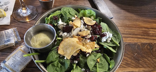 We started with the cheese board and a cup of cream of crab soup. For entrees we ordered the crab cake sandwich, pistachio carbonara and the spinach salad. We ordered the south island sunrise and the just peachy mule. The cheese board offered a tasty red dragon cheese and a bleu cheese that probably would have tasted better on bread or crackers, but our pretzel bread was burned. The cream of crab soup, though lukewarm, was delicious and full of lump crabmeat. The entrees followed shortly. My mom did enjoy her crabcake, but is still on her quest. The pistachio carbonara was served in a huge bowl that pretty much devoured the portion served. My sister struggled to taste the pistachio in the pistachio carbonara. The spinach salad was a nice size, however, the champagne vinaigrette was very thick like a mayo or aioli. Leo never returned to the table to refresh waters or other drinks or even to see if we needed something. Overall, the food was ok. If we're in the area, we might go back, but for now I don't see an...