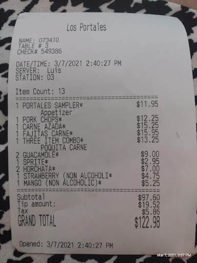 Read moreLos Portales is one of the best mexican restaurants ive been to anywhere! We’ve been coming here for almost 20 years now and have yet to leave disappointed. I dont live in the area anymore, but every time i come to visit we make it a point to come here at least once. The staff is always very friendly, efficient, and accommodating, and their restaurant is very clean. Their food is always delicious no matter what you order, but I especially like their chili verde, fajitas, tacos, tortilla soup, and their pozole (only available fri-sun or until they run out) is nothing short of AMAZING! Also, their margaritas are excellent. They do not taste like the typical ho-hum pre made “mix” margaritas that many other places seem to serve. These taste fresh, and you can tell there is more than just tequila and lime flavored sour mix in them… While their regular margarita is excellent, the cadillac margarita is a step above and is my favorite. It is quite potent but well balanced so its not harsh and goes down smooth. It tastes delicious and in my opinion is what a perfect margarita should taste like especially if you like your drinks on the stronger side! Seriously, one jumbo cadillac margarita and you feel ready to join the mariachi band!! We love Los Portales and highly recommend...
