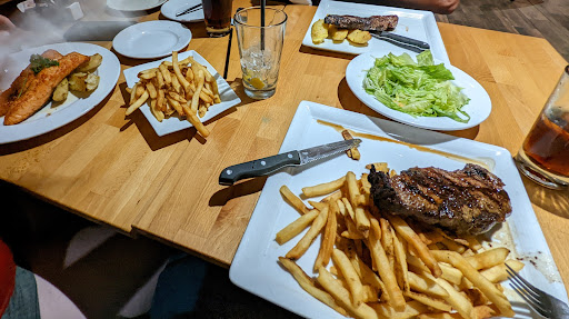Our party of 3 called ahead and made a reservation for the restaurant. It was a bit confusing on the phone, but I chalked that up to a possible busy night. We arrived and parking was limited, but we did find a spot. If you are driving a full-size truck, the parking spaces are tight. We were greeted warmly once arriving and were seated immediately. Our waitress came by and asked for our drinks and a few minutes later we received the drinks, and she took our order. Where we were seated there were about 1/3rd of the tables occupied. Once we gave our order a fair amount of time passed. I ordered a steak with the Ceasar Salad and Fries for sides. The other two ordered a steak dinner and a salmon dinner. While waiting for my salad our drinks were left alone and empty. We had to wave down another waitress to fill them. When my salad came out, it was light on the Ceasar sauce. I took a few bites, and the salad was warm. The temperature suggested that the salad was either left under a heat lamp or had been sitting out for most of the day. I did not finish that salad. We had two separate servers bring food to our table that was not ours. During this time, we had to ask them to bring out more drinks as our waitress had not been back. Once our food came out, the coleslaw was missing. We asked for Malt Vinegar. Another lady came out, said they did not have malt vinegar and asked if we would like anything else. We asked for ketchup and A1 sauce. If we are keeping count this is server #4. My guest's steak was ordered Medium Well. It came out as such and was warm like it should have been. My steak came out Medium Well, though it was ordered Medium. The steak knife brought out with my meal was broken and had two sharp metal protruding pieces. I had to use A1 on my steak due to it being dry and overdone to my liking and more charred than preferred. It was brought out hot. I had to flag down a waitress to get my knife replaced and was given another broken knife. I just dealt with it at this point in the meal. We had to flag down another waitress to get more drink refills. It was not until the end of our meal that our original waitress came back to give us the bill. It was calculated incorrectly and had to be sent back. Our original waitress asked us for dessert, but we declined.