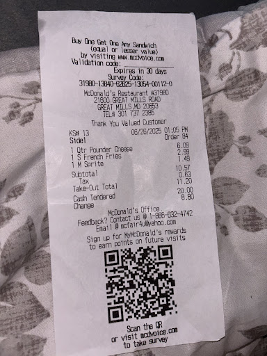 Read moreTHE WOREST McDonald's IN MARYLAND!!! I have now tried this location 4 times in 2 years...I won't be back!! Is it too hard to say "have a great day" or "bye" or even just a simple parting Farwell??? Not only have I had a long wait EACH TIME, but I am never courteously acknowledged, and the food is below par with regards to every other location I have ever eaten...2 times the burgers were COLD and all 4 times the cheese wasn't even melted....and all 4 times I was simply handed my food though the window with no words, including good bye, were uttered to me....the last time I went, the bag was handed to me and the widow was closed with out a word after receiving my food, but I sat there because my bag of food was open and 2 double cheese burgers were literally hanging out of the wrapping--I could actually see my burgers without even unwrapping them. The window gal did open to see what was wrong, so I showed the inside of the bag and stated the burgers were messy and not wrapped...nothing was said or offered so I left in uncomfortable silence. Although I don't eat fast food very often, I will do everything I can to avoid this...
