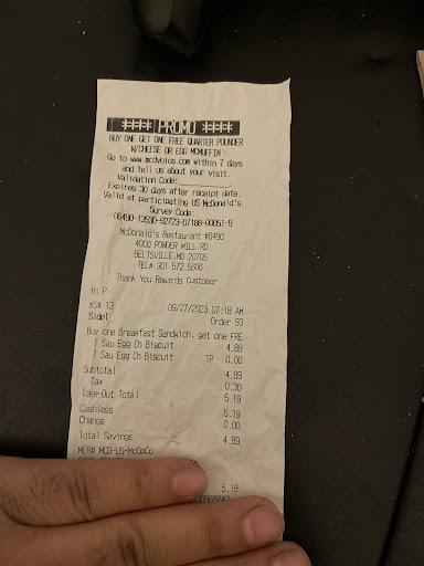 Read moreI gave this place 1 star because at 6:10 I was standing there before a cashier took my order that was 6:25. Just to tell me my order would take long. I said I would wait 7 minutes before I would have to cancel my order.. I had to be at work 7..I didn't get my order until 6:57 Why should I have to wait that long inside of McDonald's when there was no line. It was me and one other man. Smh..he was getting a Lil fussy as well...very slow...thanks for making me late for work... when in reality I think McDonald's breakfast should offer more then pork sandwiches I hate that I have to order fake steak on my sandwiches because there Patty's and bacon 🥓 is pork..they should offer beef Patty's sausage or beef bacon. Not just steak or chicken. Smh...that is why McDonald's is always my last pick of places I would go out to eat... McDonald's need a better idea 💡 🤔 for food... they also need to think about us people that don't eat pork.. why should we have to pay more because of it...hmm I think maybe I should air this publicly... because to think of it its wrong and discrimination against non Americans that don't eat pork.. all we have as a choice is steak and chicken . Why should we have to wait for lunch or dinner for beef..or a salad 🥗...now I wonder how many people would...